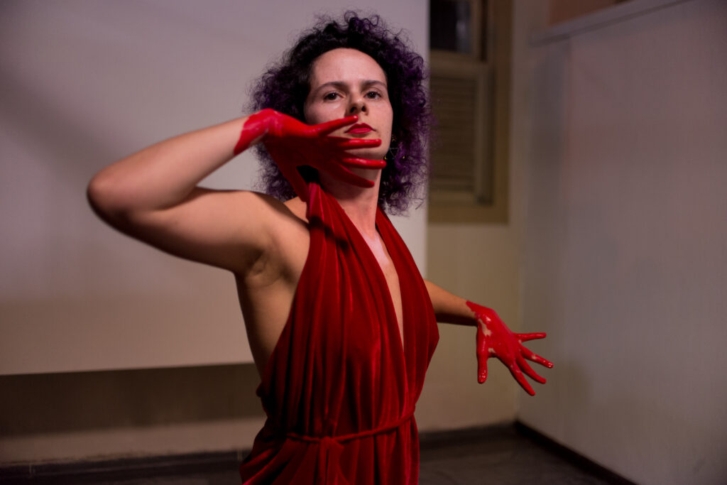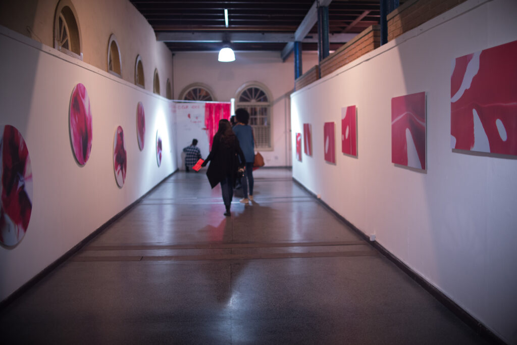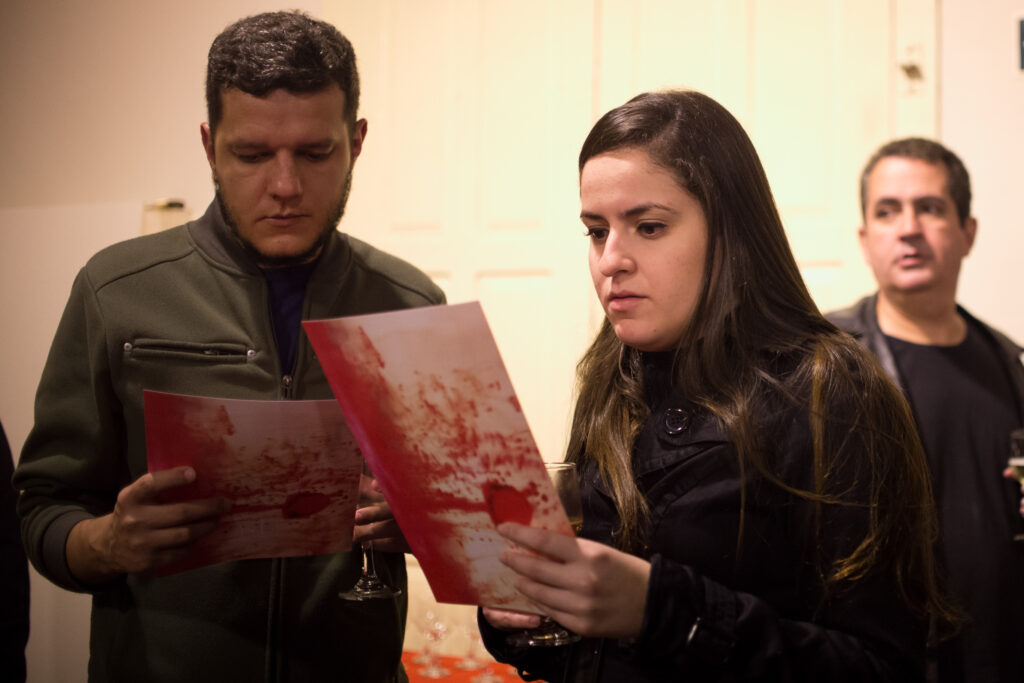 Três séries fotográficas foram criadas, com seis imagens cada, a partir da interação do sangue com os elementos: água, porcelana e leite. A exposição também contou com um espaço interativo para o público deixar suas impressões sobre a menstruação, orientados à partir de três perguntas: O que você sabe sobre menstruação? O que você faz menstruadx? O que você sente quando olha para o sangue menstrual? E na abertura da exposição a artista realizou a performance “Fluxo”.