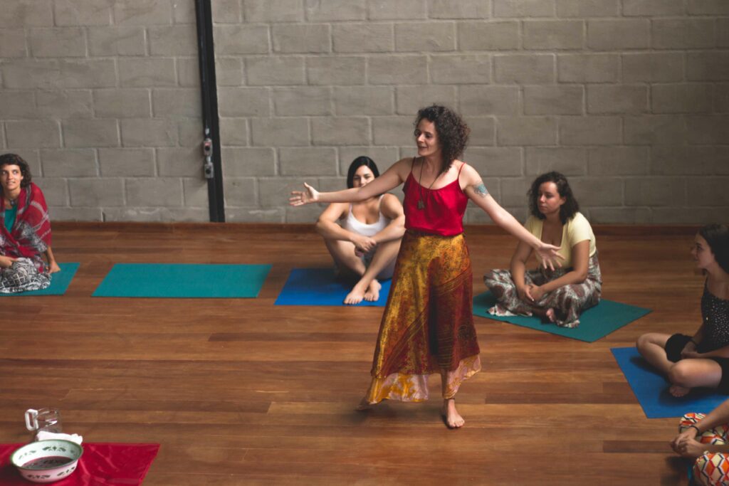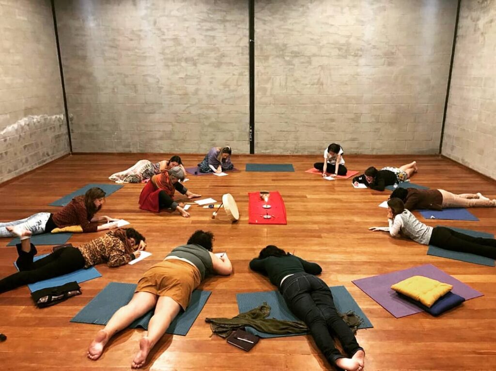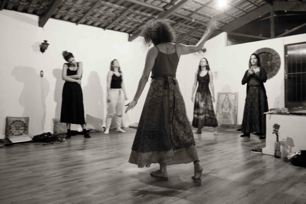 “A oficina me trouxe de volta. Trouxe a mulher de volta. A oficina resgatou! Ansiosa para fazer o modulo 2. Num é só corpo, é magico, é bruxaria, é uma energia o que as mulheres conseguem mover juntas. E mais do que o conteúdo, que já é maravilhoso, é você estar ali em grupo com todas aquelas mulheres…todos esses espelhos. Quando você começa a entender… me lembro da gente falando sobre cuidado… o que cada uma entende sobre cuidado, a gente percebe como a gente foi castrada e quantas dores a gente viveu e que todas as mulheres viveram… e que tá todo mundo no mesmo barco. A oficina é resistência amorosa! É! Se há uma palavra que define é resistência amorosa! Você consegue mana!”