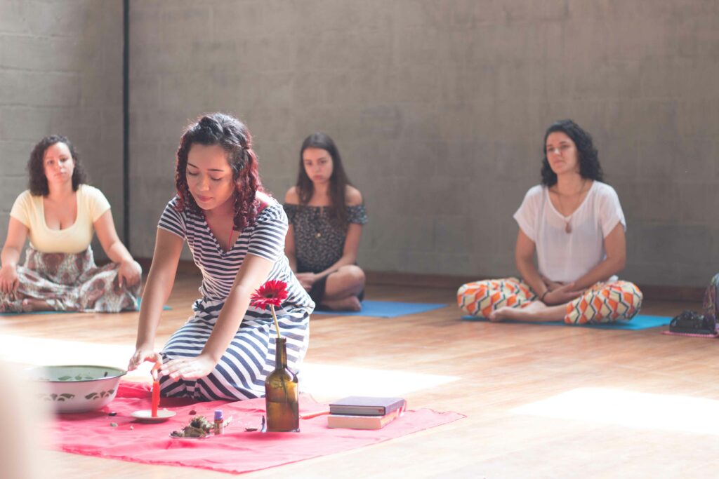 Além disso, todo o conteúdo foi desenvolvido para que houvesse uma parte teórica e reflexiva e uma parte prática que envolvesse o corpo e as emoções, seja por meio de meditação conduzida, rituais, práticas de expressão artísticas e consciência corporal (individuais e ou coletivas), dentre outros tipos de exercícios que estimulassem um contato consigo, com o outro e o entorno.